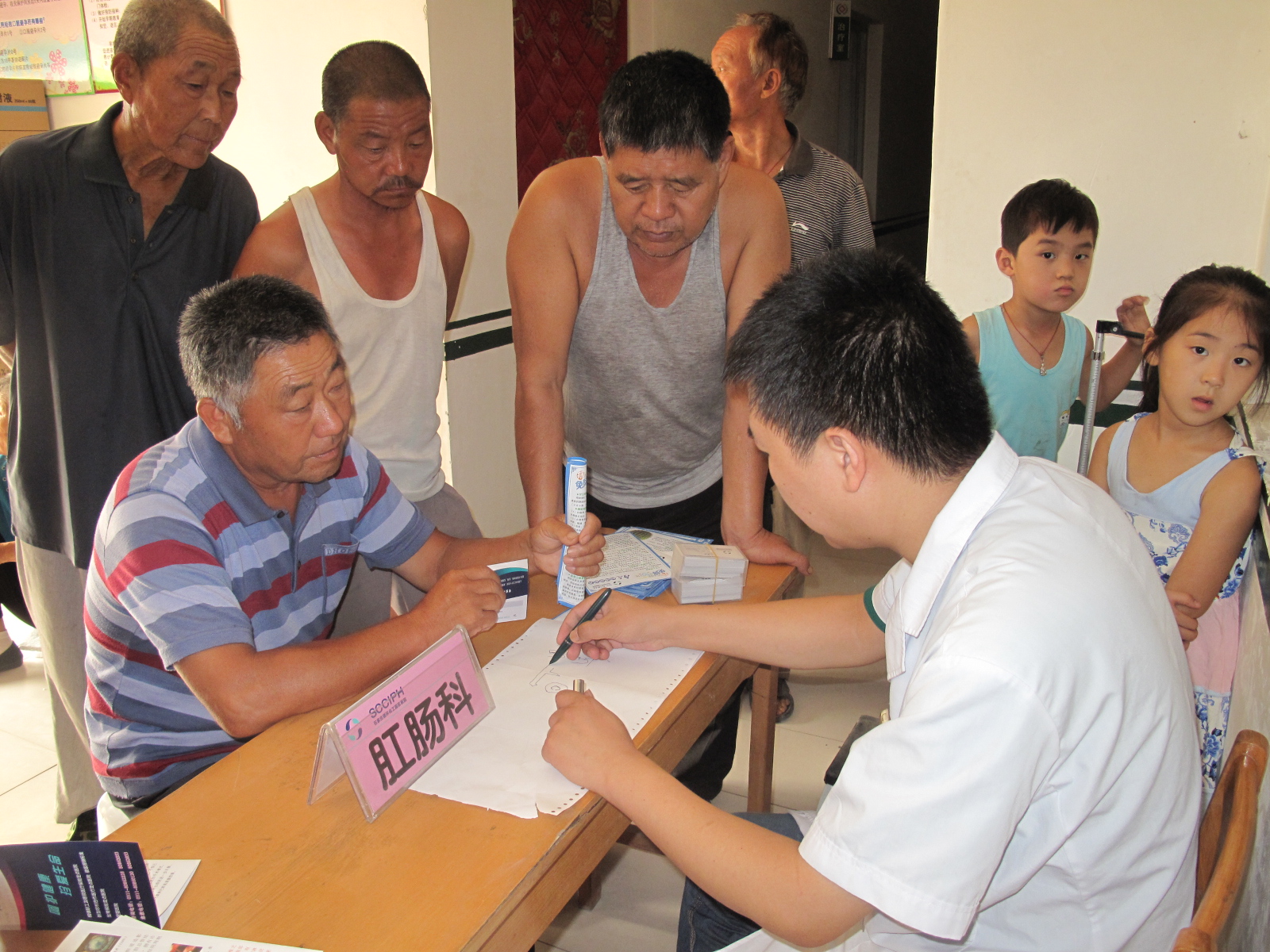 圖為肛腸科的??漆t(yī)師耐心地為村民講解痔瘡的預防和治療的保健知識。