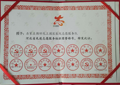 “弘揚(yáng)志愿精神,撒播愛(ài)心火種”我院志愿活動(dòng)自開(kāi)展以來(lái),受到了不同群體的廣泛贊譽(yù),經(jīng)過(guò)大家的共同努力,我院志愿者服務(wù)隊(duì)被授予“河北省先進(jìn)志愿服務(wù)組織”榮譽(yù)稱號(hào)。